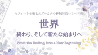 大アルカナ21番「世界」は、“完成と統合”の象徴。セフィロトの樹でイェソドとマルクトを結ぶ道を通じ、魂はひとつの循環を終え、再び新たな旅へ向かいます。