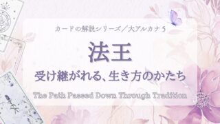 【カード解説】大アルカナ5番「法王」。象徴・心理の側面・正位置/逆位置の意味を丁寧に紐解く。受け継がれてきた教えや価値の基準が社会の中で共有され、継承されていく“伝統と導きの象徴”――法王を見つめたい方へ。カードの象徴と意味を、初心者の方にもわかりやすく解説します。
