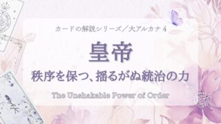 【カード解説】大アルカナ4番「皇帝」。象徴・心理の側面・正位置/逆位置の意味を丁寧に紐解く。守るべき基準と境界を定め、責任を引き受けながら現実に安定した秩序を築いていく“秩序と統治の象徴”――皇帝を見つめたい方へ。カードの象徴と意味を、初心者の方にもわかりやすく解説します。