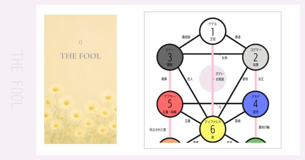 この記事では、『愚者』のカードを、“セフィロトの樹”とのつながりをたどりながら、詳しく見ていきましょう。