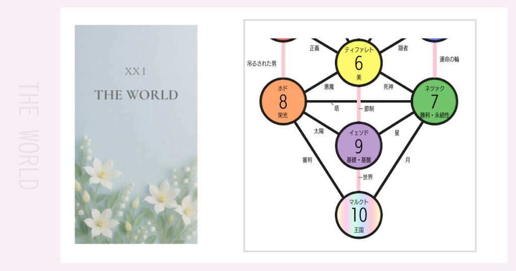 この記事では、『世界』のカードを、“セフィロトの樹”とのつながりをたどりながら、詳しく見ていきましょう。